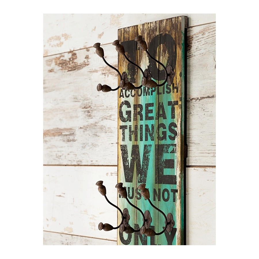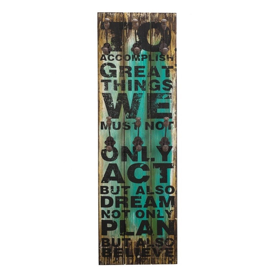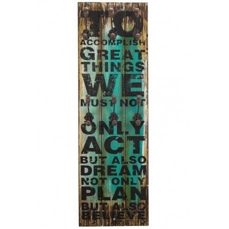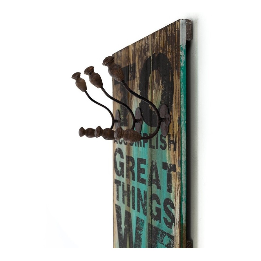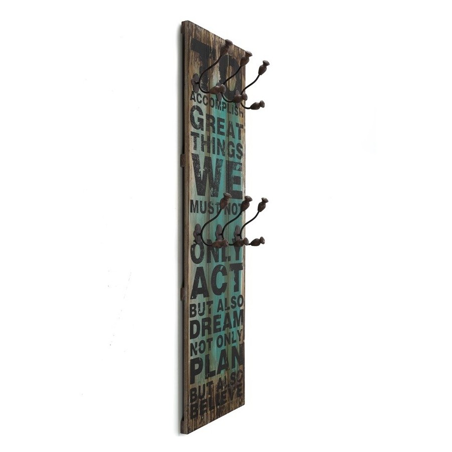 Dodatki w stylu retro, a wśród nich wieszaki ścienne w charakterystyczny sposób nadadzą nowy styl twojemu mieszkaniu. Wieszak retro z kolekcji Vintage Colm wykonany jest z drewna i metalu. Drewno ma różne kolory i czarny angielski napis oraz posiada dziewięć wieszaczków.