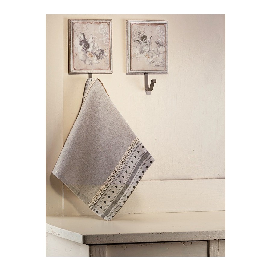 Urocze wieszaki w stylu prowansalskim to małe haczyki, na których możesz powiesić ręcznik, szlafrok lub ubranie. Wieszaki ścienne ozdobiono tabliczkami z wizerunkami trzech nagich aniołków latających w przestworzach. Przedmioty pezentują się pięknie i oryginalnie.