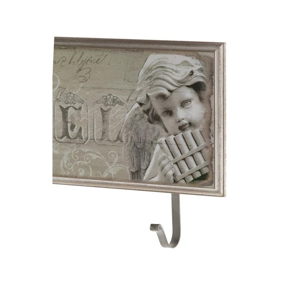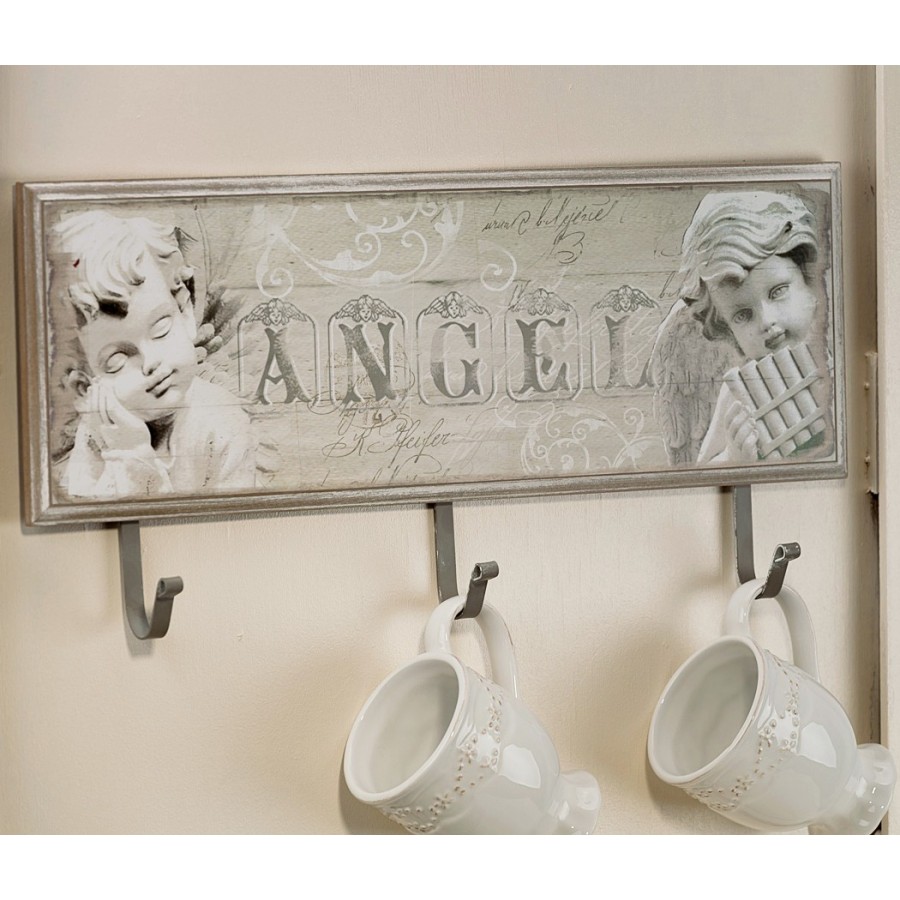 Przepiękny wieszak ścienny w stonowanym, delikatnym kolorze z dwoma aniołkami i napisem ANGEL!