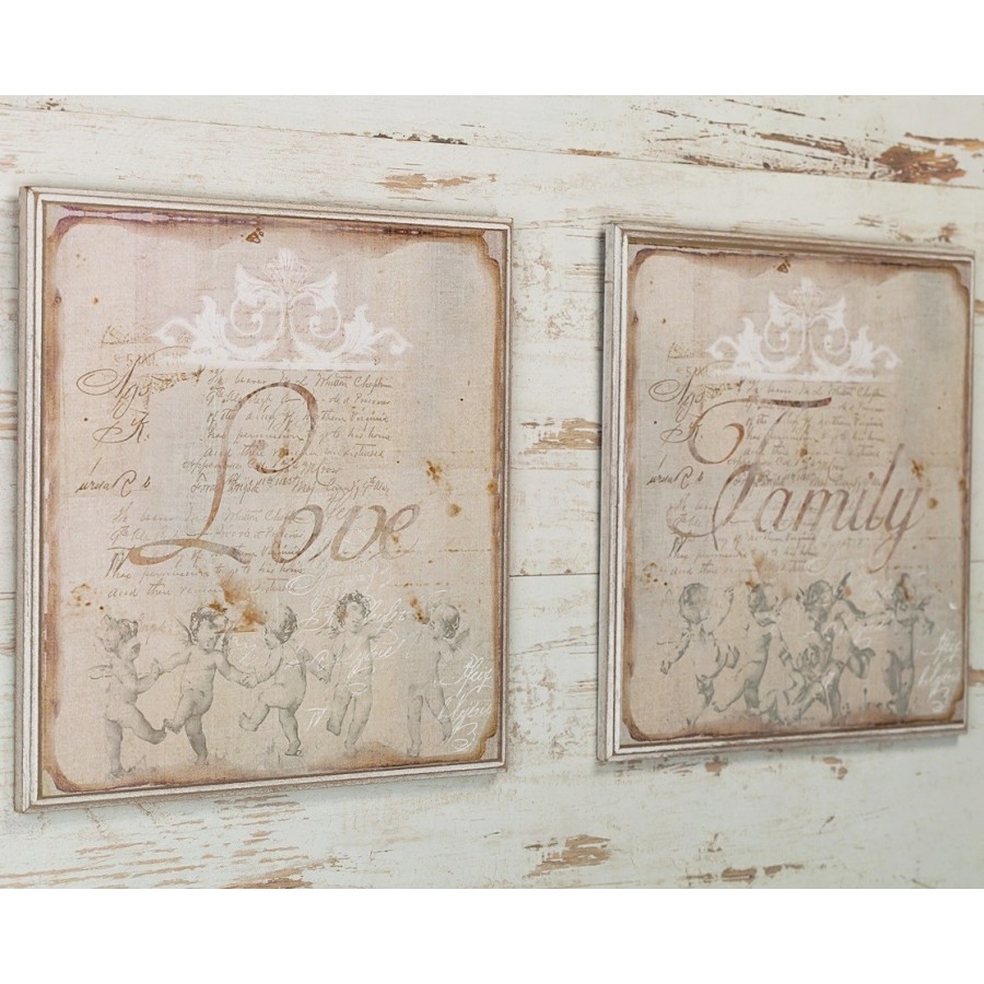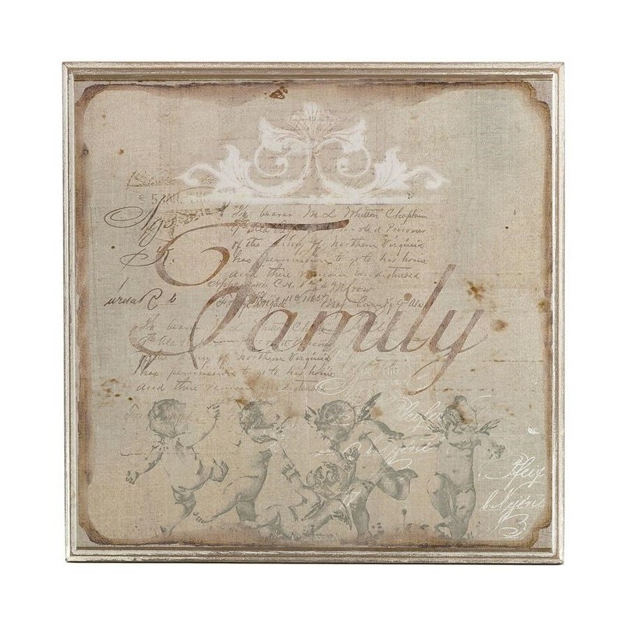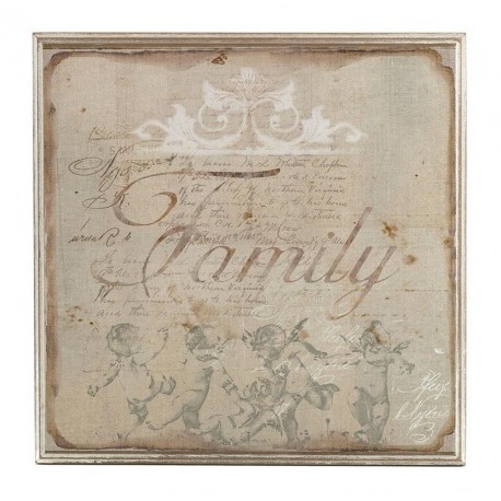 Unikatowy obraz o wymiarach 25x25 cm. Drewniany obraz renomowanej marki pochodzi z kolekcji Paradiso. Obraz utrzymany jest w jasnej kolorystyce i zawiera napis Family oraz zarys aniołków. To piękne dzieło będzie doskonale prezentować się na każdej ścianie. Jeśli lubisz subtelne obrazy w stylu prowansalskim to wybierz właśnie ten uroczy obraz!