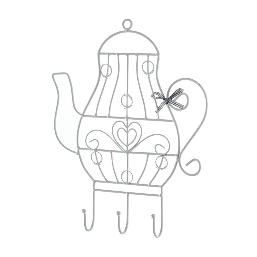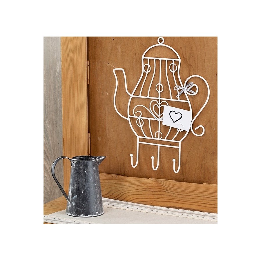 Białe wieszaki w stylu prowansalskim w kształcie imbryczka to bardzo pomysłowe przedmioty. Trzy sporej wielkości haczyki służące do zawieszenia na nich np. ściereczek, świetnie sprawdzą się w kuchni. Konstrukcja znajdująca się powyżej haczyków zachwyca urodą wykonania a malutka wstążeczka dopełnia całości. Wieszak Shabby to nie jest zwykły wieszak, możesz doczepić do niego karteczki z wiadomościami. Polecamy!