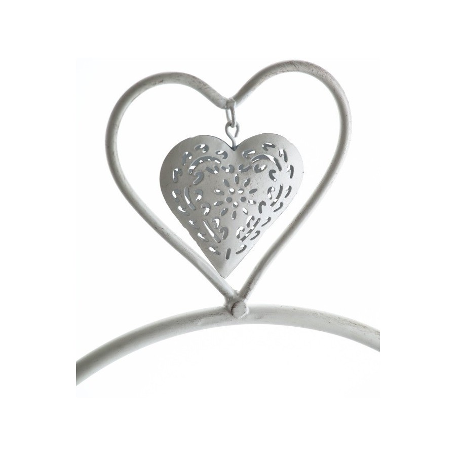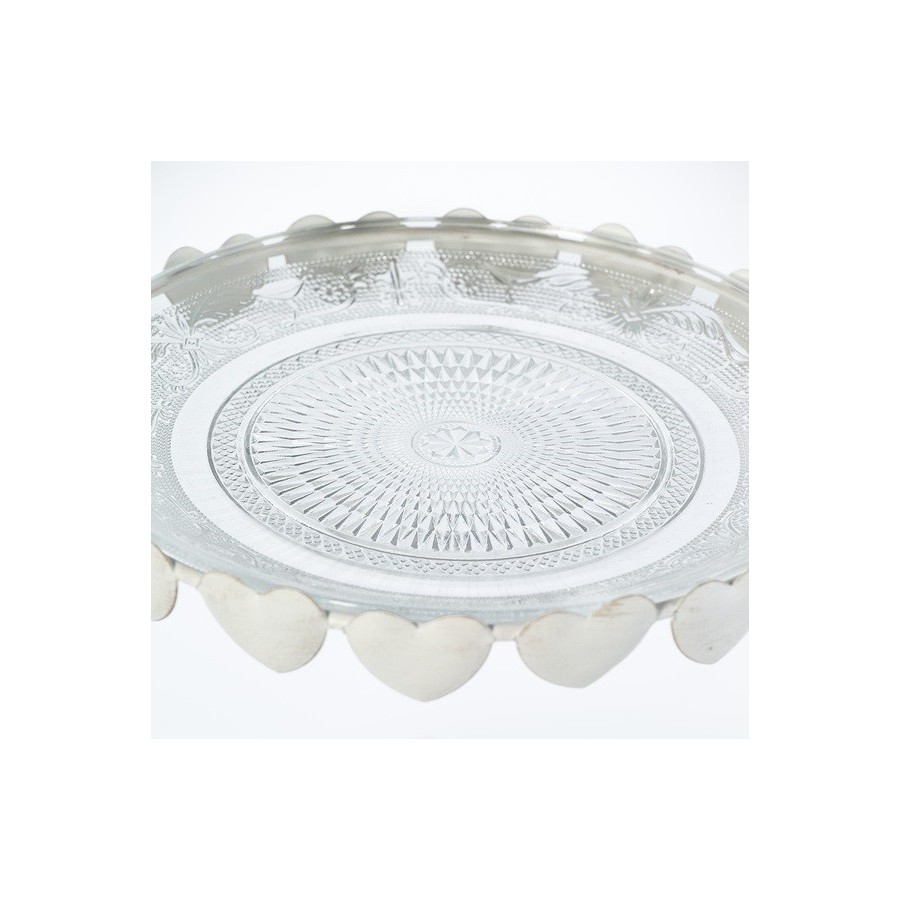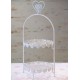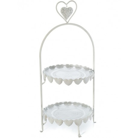 Biała etażerka w stylu prowansalskim została wykonana z metalu i szkła. Urocza, półkolista konstrukcja zwieńczona jest serduszkiem, w środku, którego spoczywa jeszcze jedno serce – mniejsze z motywem ażurowym. Półeczki w etażerce stanowią dwa, szklane talerzyki z pięknym a zarazem delikatnym motywem dekoracyjnym. Całość prezentuje się naprawdę przyciągająco! Odkryj inne, równie piękne dodatki do kuchni!