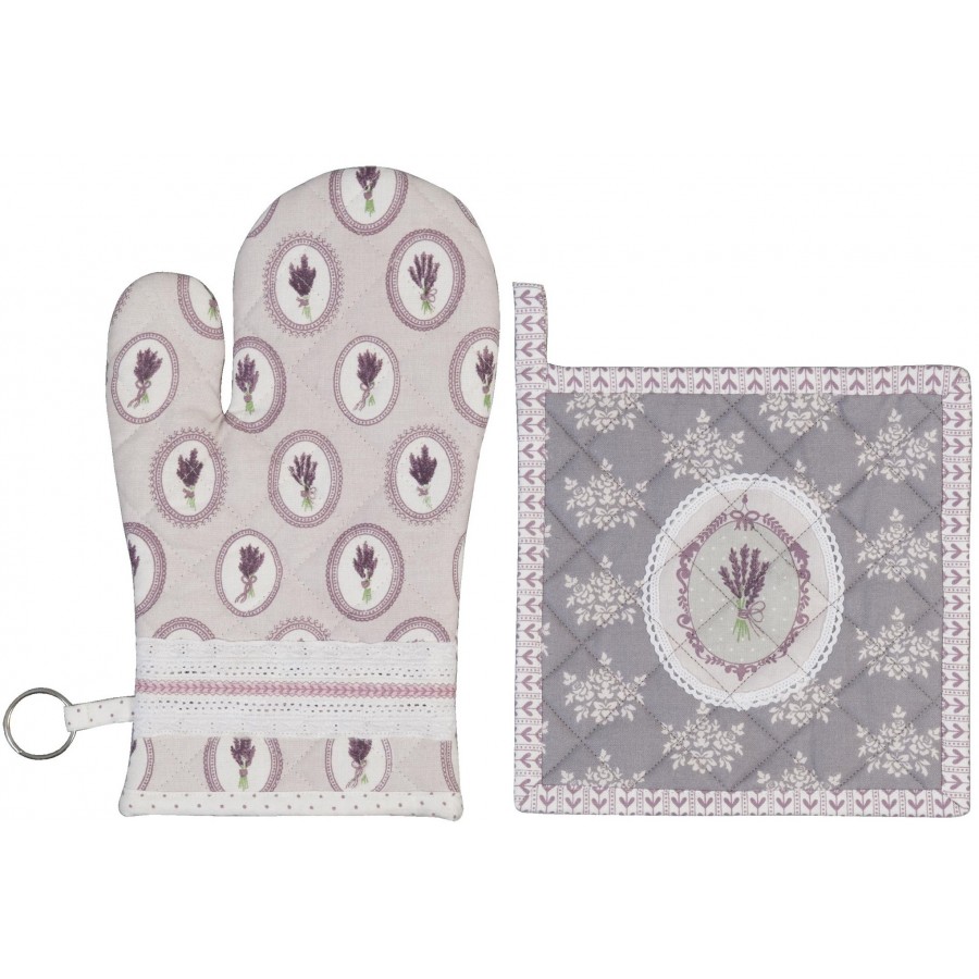 Urocze dodatki do kuchni to z pewnością rękawica kuchenna z chwytakiem, którą wykonano z bawełny. Materiał ozdobiono ciekawym dekorem - wizerunkami wiązanek lawendy. Przedmiot utrzymano w kolorystyce delikatnego fioletu. Polecamy!