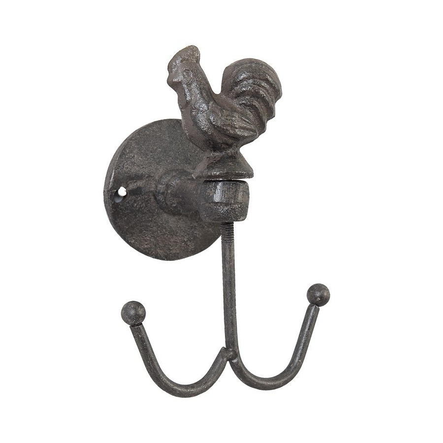Wieszak z kogutem to oryginalny pomysł na funkcjonalne udekorowanie mieszkania. Przedmiot jest wytrzymały a jego konstrukcja zawiera dwa haczyki zakończone zgrabnymi kuleczkami. W górnej części wieszaka znajduje się postać kogucika. Ozdób swoje mieszkanie w nieco rustykalnym stylu! Wieszaki ścienne z żeliwa – zachęcające!