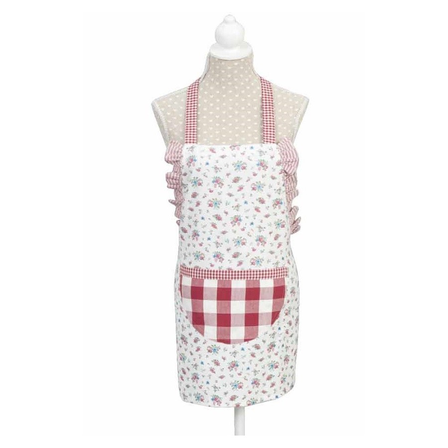 Jeśli chcesz zachęcić swoje dziecko do pomocy w kuchni lub po prostu mile spędzić z nim czas np. piekąc ciasteczka to dziecięcy fartuszek dla dziewczynek jest idealny na taką okazję. Produkt uszyto z bawełny i ozdobiono ładną kieszonką w biało-czerwona kratę. Większość fartuszka udekorowana jest motywem kwiecistym umieszczonym na białym tle. Po bokach natomiast, wszyto ujmujące, pasiaste falbanki. Fartuszki kuchenne z bawełny – polecamy!