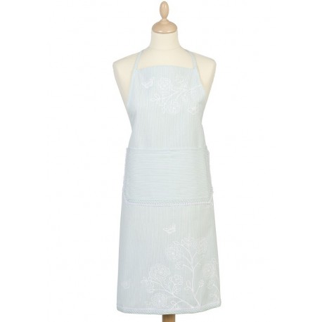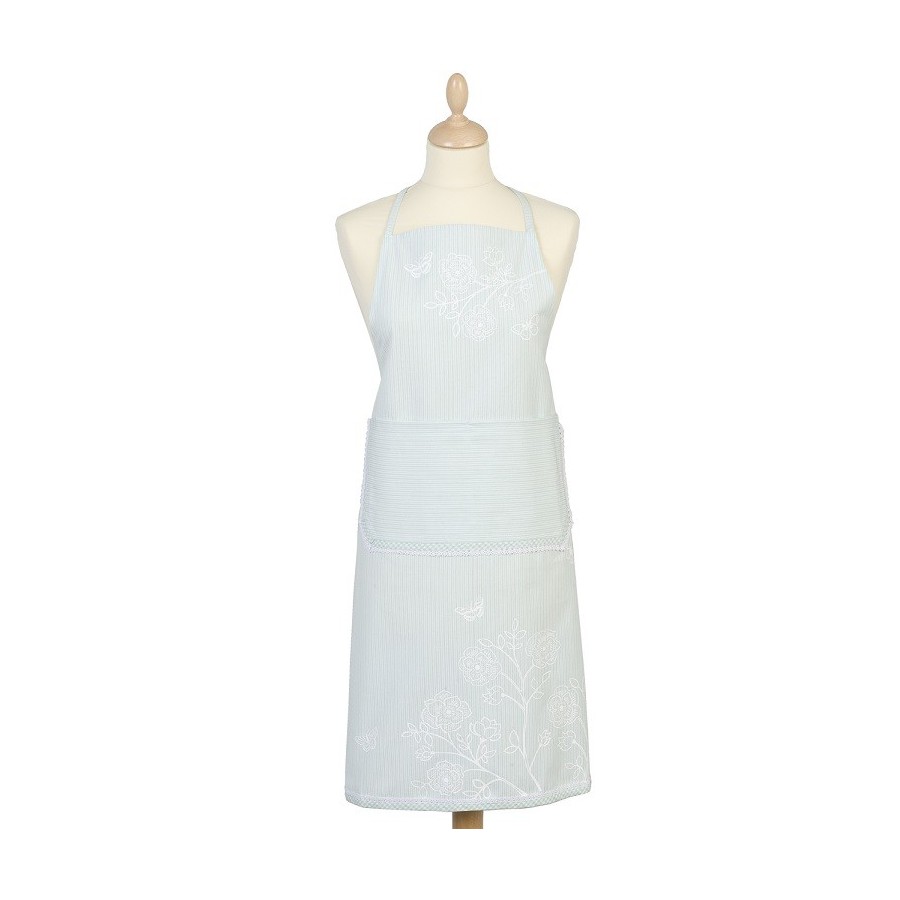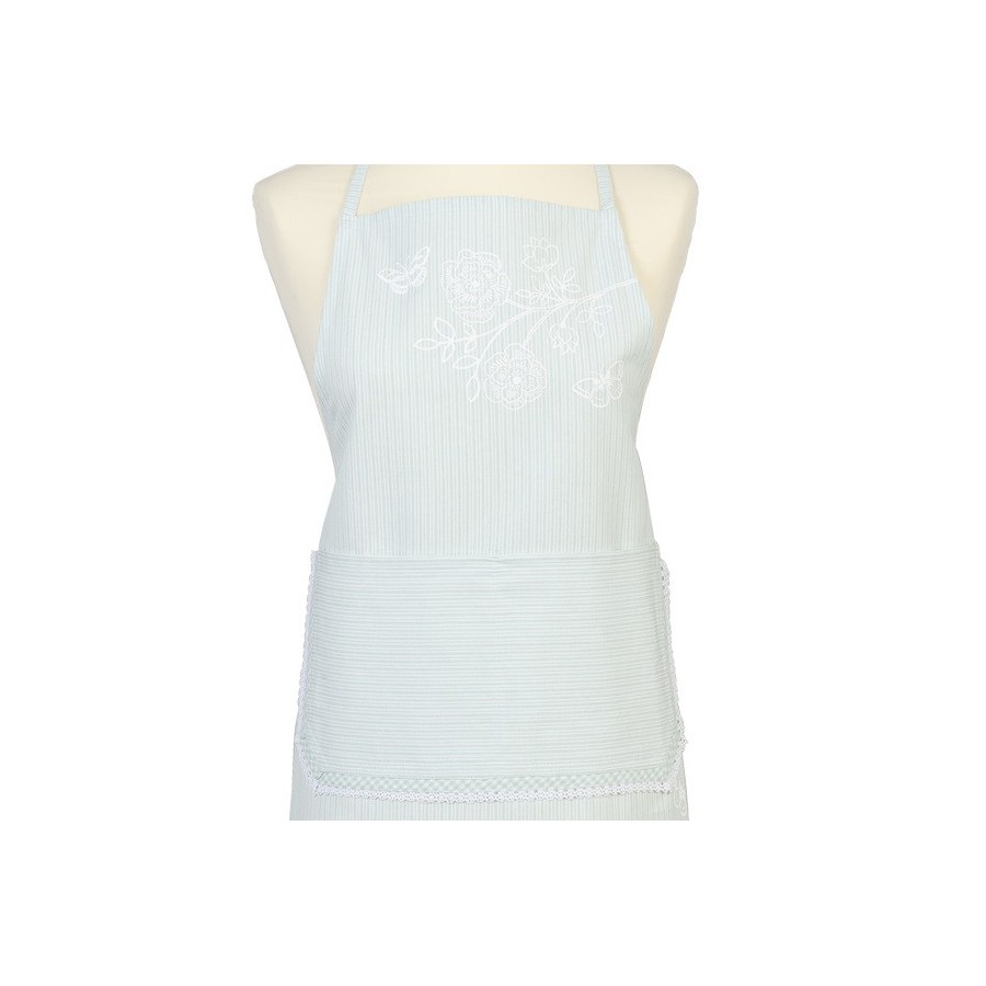 Wyjątkowo piękny fartuszek kuchenny w barwie błękitnego nieba został wykonany z bawełny. Lekkie prążkowanie fartucha stanowi jego ozdobę, a motyw motyla i kwiecistych gałązek dodaje mu uroku. Wyglądaj świetnie w kuchni! Polecamy inne fartuszki kuchenne!