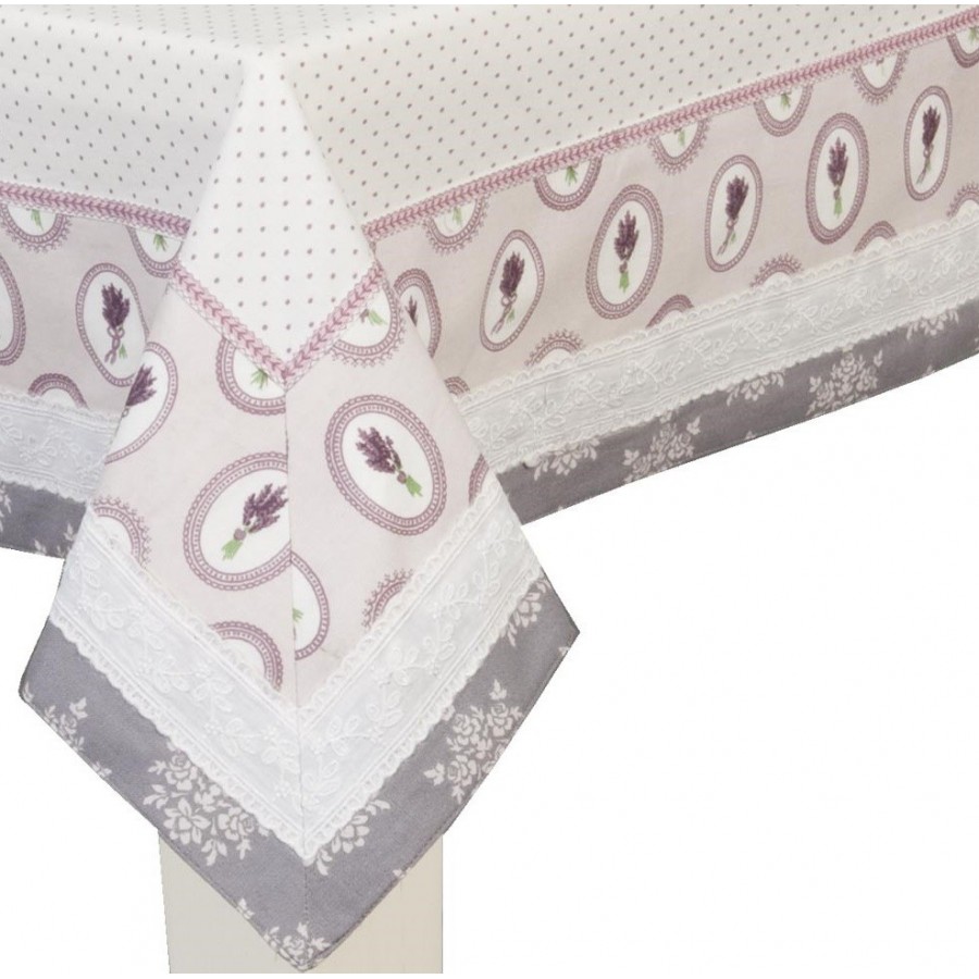 Starannie wykończony haftowanym materiałem obrus z lawendą, który uczyni Twój stół stylowym i eleganckim!