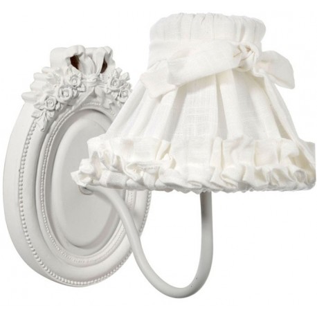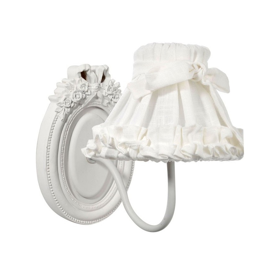 Rewelacyjne kinkiety francuskie łączące w sobie jednocześnie drewno, metal i bawełnę to bardzo stylowe dodatki do sypialni, salonu czy wnętrz ogólnoużytkowych. Pięknie udrapowany, bawełniany abażur z dodatkowo przewiązaną kokardą doskonale współgra w rzeźbionym elementem, dzięki któremu możemy kinkiet francuski powiesić na ścianie. Wszystko to w otoczeniu delikatnej, acz nie rażącej w oczy bieli.
