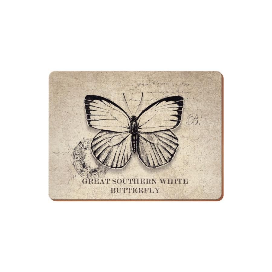 Podkładki korkowe z prześlicznym motylem, które łatwo wyczyścisz za pomocą wilgotnej ściereczki.