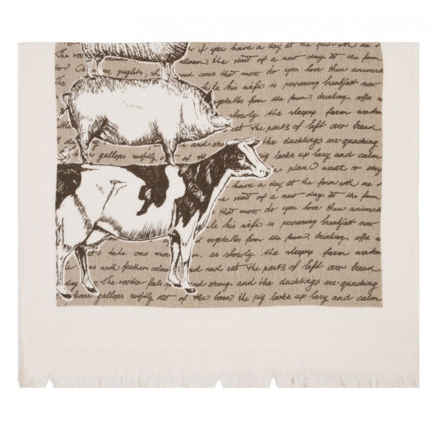 Wesoło prezentujący się ręcznik kuchenny wykonany z wysokiej jakości bawełny, na krótszym boku zakończony malutkimi frędzelkami. Bardzo praktyczny, miękki w dotyku i poręczny. Widniejące na nim zwięrzęta prosto z wiejskiej farmy zachęcą domowników do aktywnej kulinarnej zabawy!