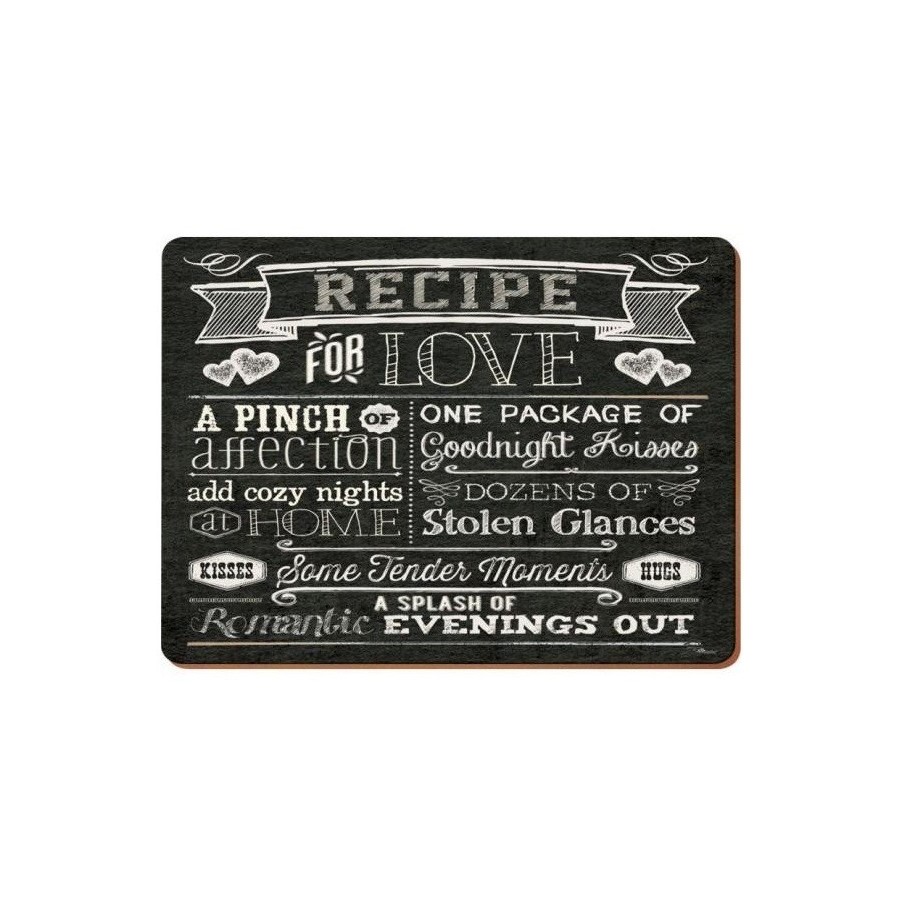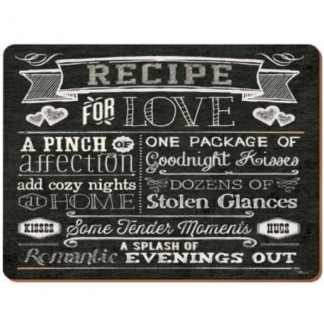 Ozdobne podkładki w stylu retro z czarno-białą lakierowaną powierzchnią i pomysłowo podanym przepisem.