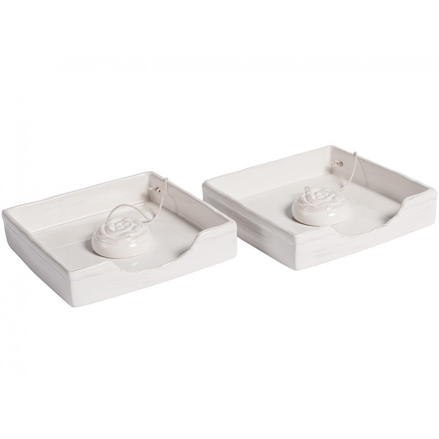 Przepiękny serwetnik w stylu prowansalskim to wykonana z ceramiki podkładka pod serwetki ze stylową różą.