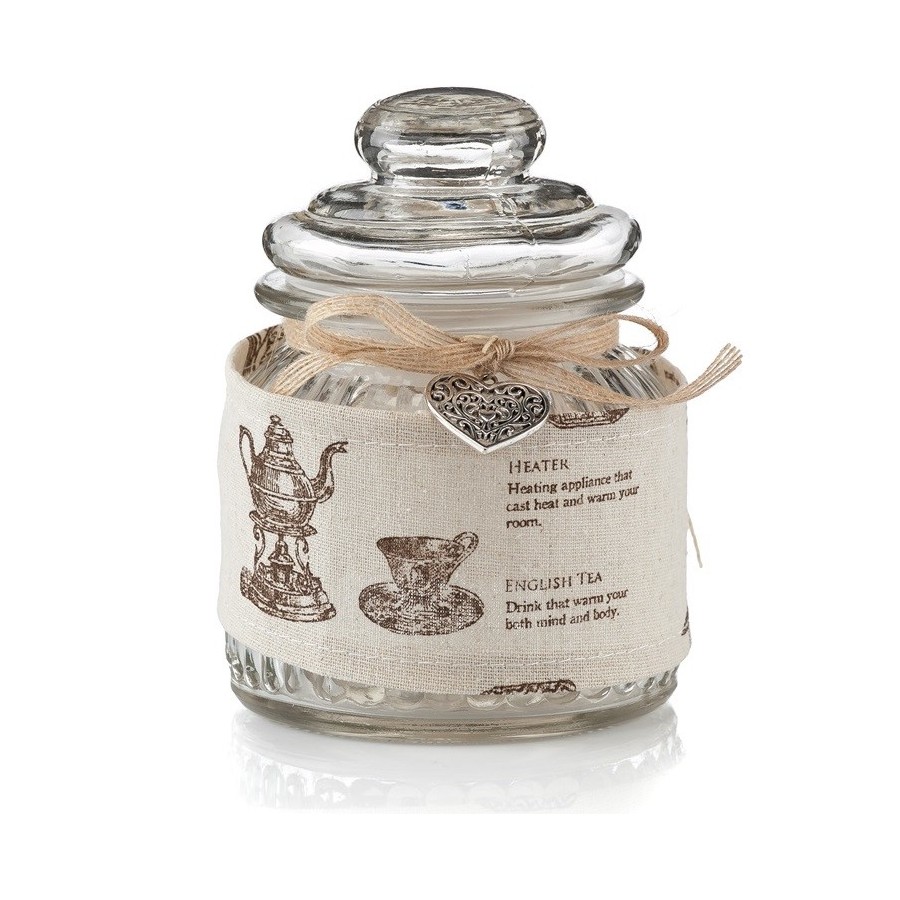 Nietypowy dzięki materiałowi, który go otula, szklany pojemnik z pokrywką to nasza propozycja na przechowywanie produktów spożywczych, stylowa i praktyczna. Dzięki wieczku zawartość pojemnika chroniona jest przed wilgocią, a ozdoby w postaci materiału z nadrukowaną grafiką i sznurka zawiązanego w kokardę wyróżniają szklany pojemnik na tle innych!