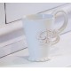 Cudowny, ceramiczny kubek w stylu prowansalskim w kolorze białym z otartymi elementami dekoracyjnymi.
