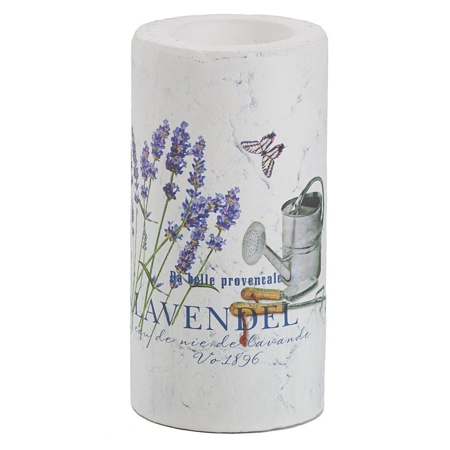 Sielankowo wyglądający świecznik prowansalski, ceramiczny, pomalowany na biało, z kolorowymi grafikami przedstawiającymi kwitnącą lawendę, konewkę i narzędzia do prac w ogródku oraz ślicznego motylka, przeplatane francuskimi napisami. Tętniący życiem i harmonią świecznik prowansalski świetnie sprawdzi się jako ozdoba, która w niebanalny sposób rozświetli Twoje wnętrze.