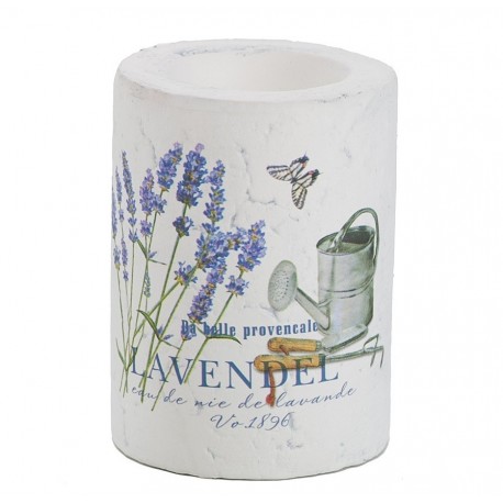 O walcowym kształcie świecznik prowansalski z pierwszoplanowym motywem kwitnącej lawendy. Zobacz koniecznie!