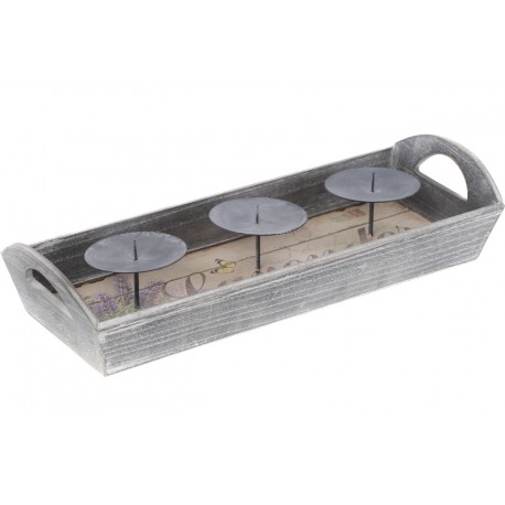 Niezwykły w swojej formie świecznik z lawendą to element dekoracyjny, będący częścią kolekcji Prowansja - dodatki w stylu prowansalskim. Płonące trzy świece rozproszą ciemność i mrok, tworząć fantastyczny klimat, stosowny do okazji. Świecznik prowansalski w kształcie wanienki z miejscem na trzy świece i grafiką na dnie- Polecamy!