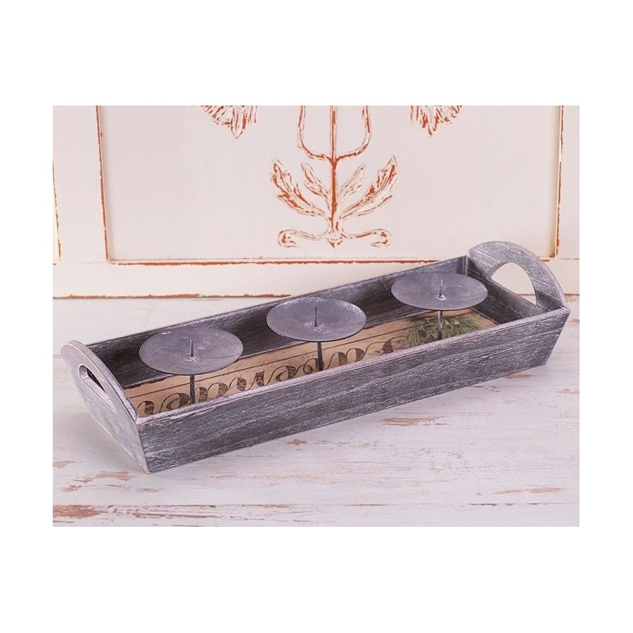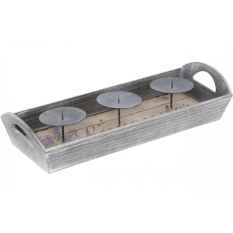 Rewelacyjny świecznik prowansalskim na trzy świece z motywem lawendy na dnie konstrukcji. Ujmujący prostotą!