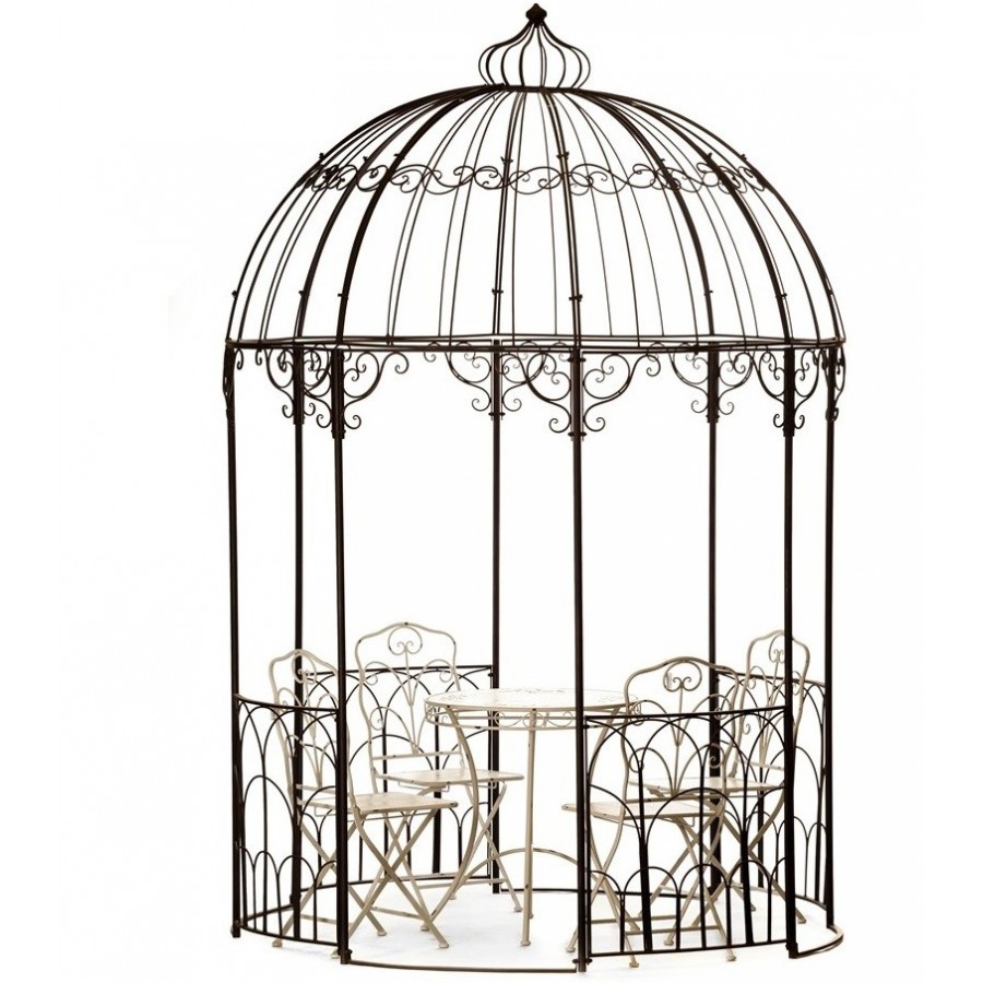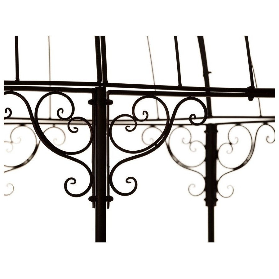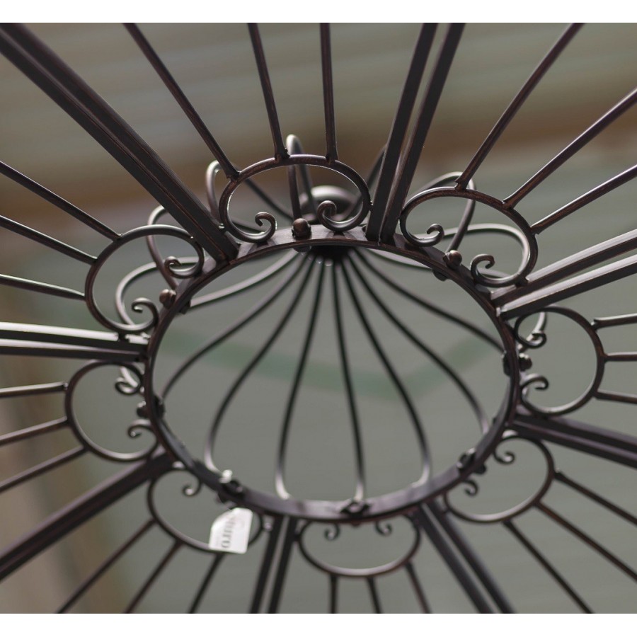 Niezwykła metalowa altana o wyjątkowo ozdobą kopułą, mająca wejście z czterech stron. Wyobraź sobie jak pięknie wyglądać będzie w Twoim ogrodzie, opleciona przez kwitnące róże czy inne kwiaty pnące. Jak cudownie będzie osłaniała Cię przed słońcem w bezchmurne dni czy jak miło będzie wypić w jej wnętrzu popołudniową herbatę czy kawę.