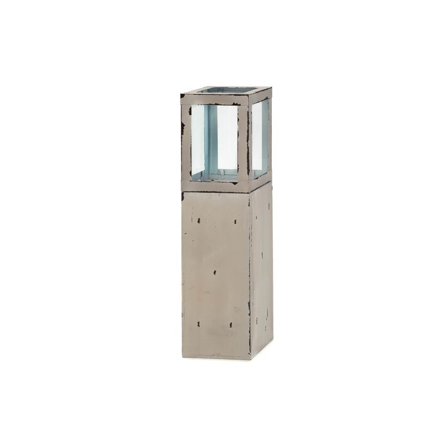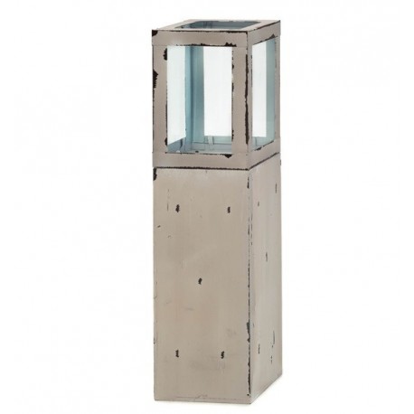 Prezentujemy duży lampion z metalową, zabudowaną w czterech stron podstawą w jasnym kolorze, z celowymi ciemnymi zadrapaniami, które tworzą wyjątkowy klimat. Dzięki nim wysoki lampion wygląda na starszy i bardziej stylowy. Szklana, górna część lampionu ma klimatycznie rozpraszać światło świec, aby zapanowała niepowtarzalna atmosfera. Dodatkowo część ta zabezpiecza płomień przed wiatrem co pozwala umieścić lampion Vintage także na zewnątrz!