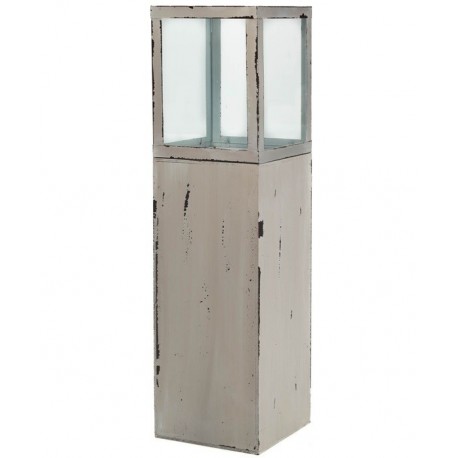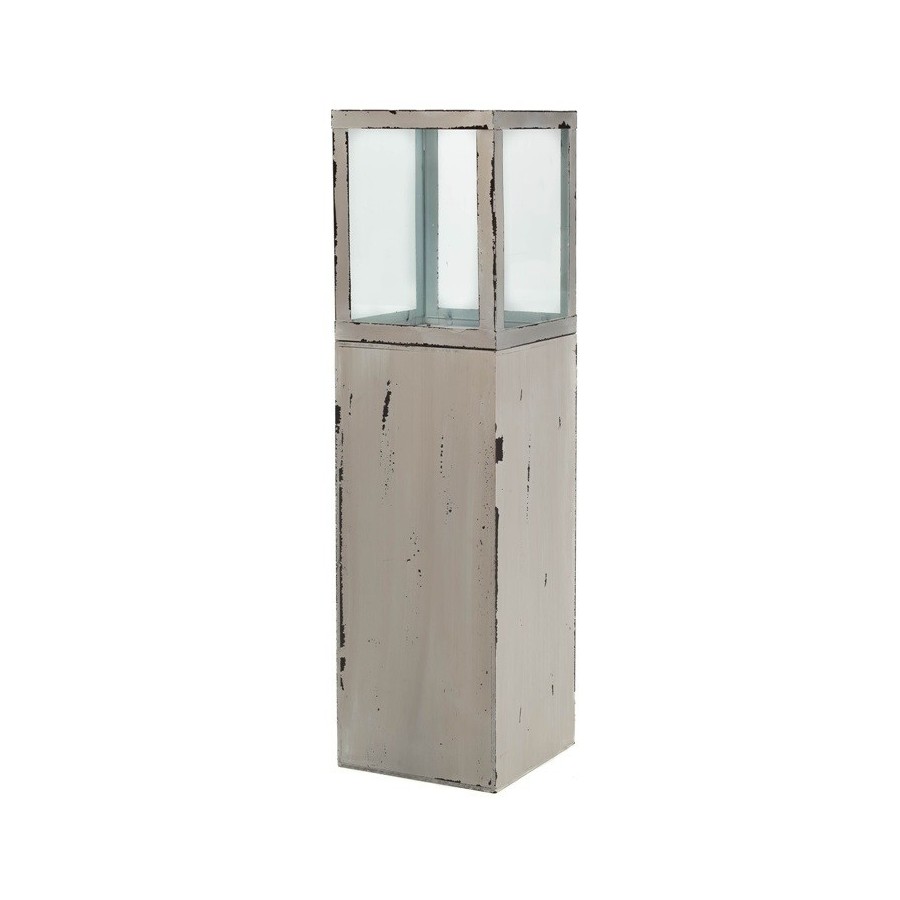 Duży lampion z kolekcji Vintage, ustawiony na metalowym, wysokim cokole, w całosci zabudowanym. Jego urok podreślą szklane przesłony, przez które klimatycznie rozchodzi się światło świec, jednak lampion może mieć inne przeznaczenia, w zależności od Państwa upodobań. Lampion Vintage jest celowo poocierany, aby wyglądać bardziej stylowo!