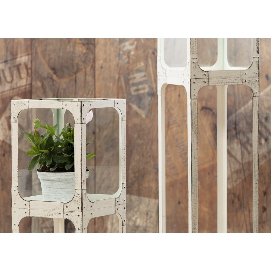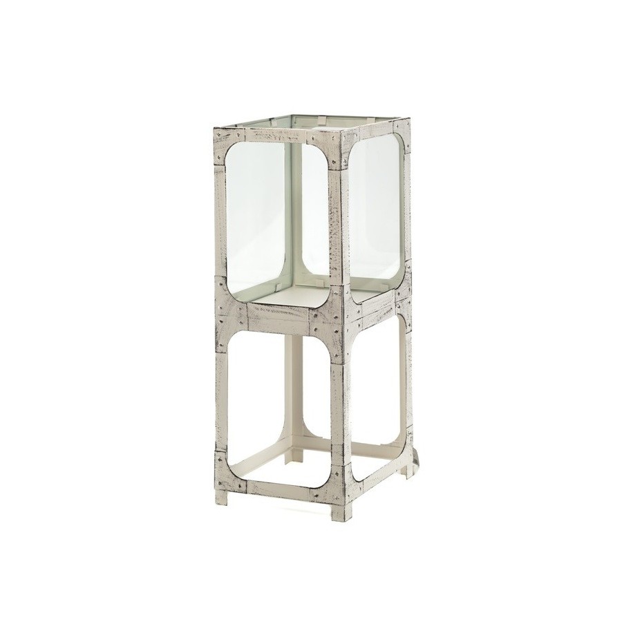 Wielofunkcyjny wysoki lampion Vintage, który możesz zaaranżować jako tytułowy lampion na świece, stojak na kwiaty czy osobliwą półkę dekoracyjną. Poocierana metalowa powłoka tworzy surowy klimat dawnych lat, natomiast szklane szyby niesamowicie rozprzestrzeniają światło, stwarzając optyczne wrażenie powiększenia wnętrza!