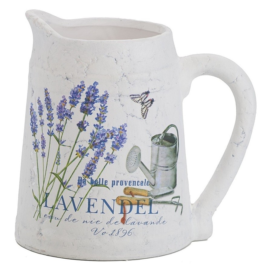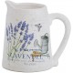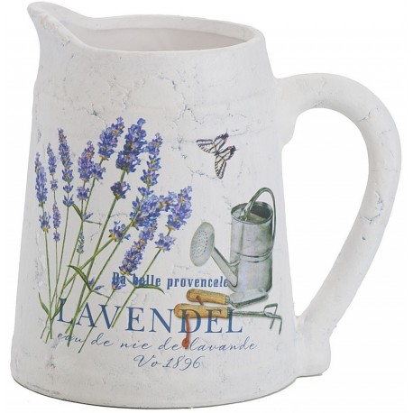Rewelacyjny dzbanek prowansalski z dużym uchem. Pomalowany na biało dzbanek z lawendą kształtem przypomina dawne dzbany na wodę, jednak kolorowa grafika połączona z delikatnymi napisami w języku francuskim z pewnością są wytworami współczesnych producentów. Połącz w swoim wnętrzu tchnienie dawnej kultury z elegancją.