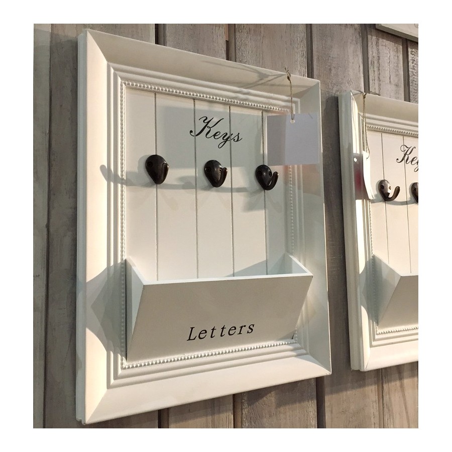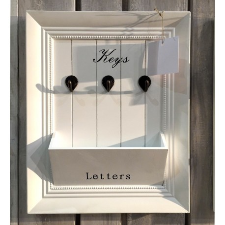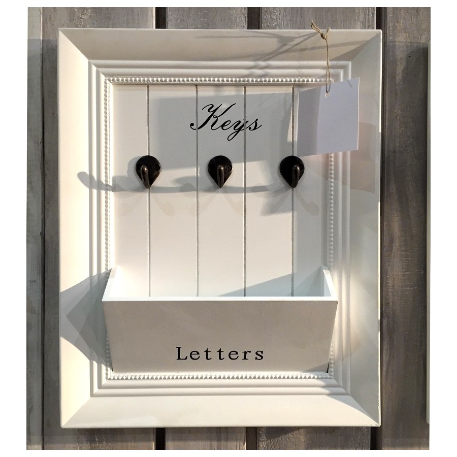 Elegancka, drewniana półka na listy i wieszaki na klucze w jasnej kolorystyce, wkomponują się w każde wnętrze zarówno w kuchni jak i w przedpokoju. Wyglądająca jak ramka na zdjęcia półka posiada trzy wieszaczki na klucze, z napisem KEYS oraz praktyczną szufladkę na listy. Dzięki temu dodatkowi nigdy już nie zapomnisz, gdzie znajdują się Twoje klucze, koniec z nerwami i spoźnieniami!