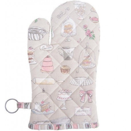 Gruba, obszyta kolorowym materiałem w kulinarno-słodkie motywy rękawica kuchenna z uchwytem do zawieszenia!