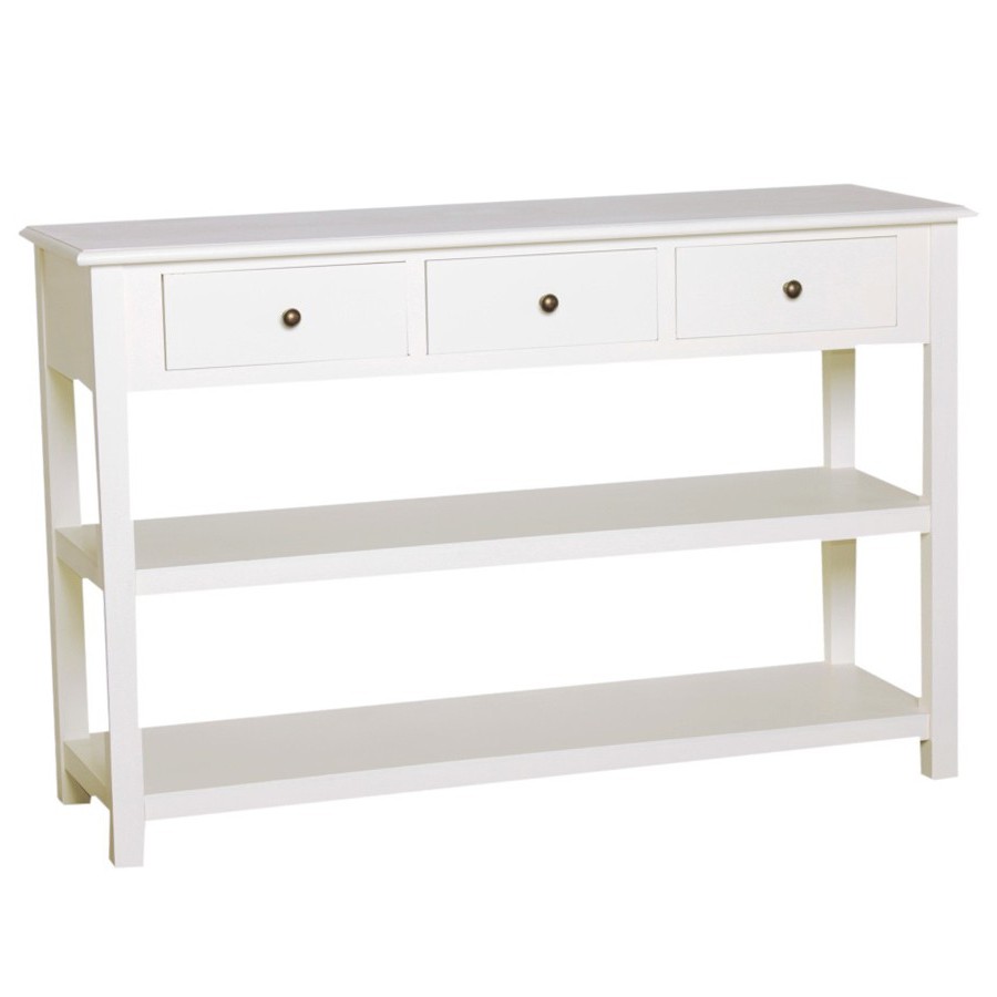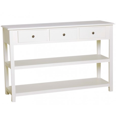 Cudownie elegancka konsola w stylu prowansalskim z trzema szufladami i dwoma półkami. Bo liczy się estetyka!