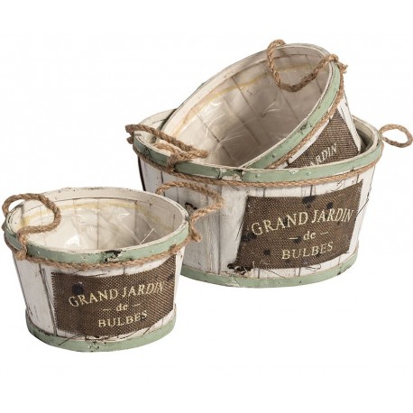 Wykonane z drewnianych deseczek połączonych za pomocą obręczy osłonki w stylu prowansalskim, o niewiarygodnej estetyce kształtu i wykonane z naturalnych materiałów. Dodatkowo ozdobione zostały materiałem, z nadrukowanymi napisami w języku francuskim. Dopasują się do każdej doniczki!