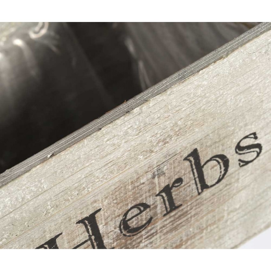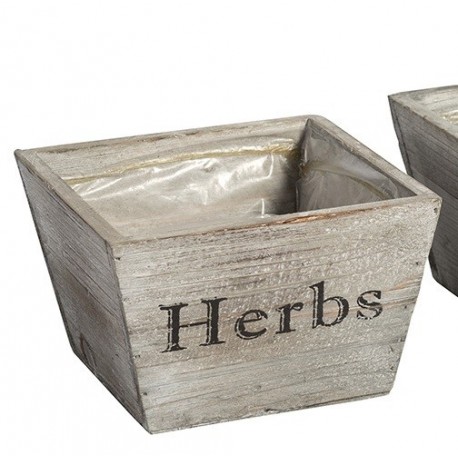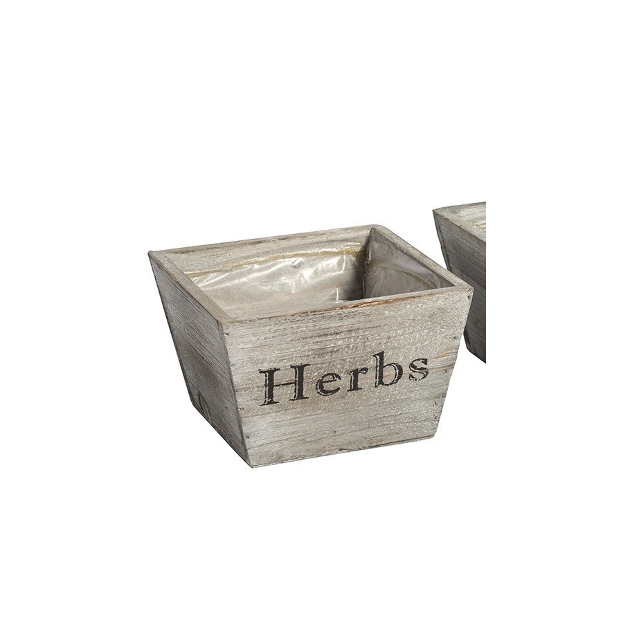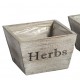 osłonki na doniczki z wyraźnym napisem Herbs na frontowej ściance. Wyłożone od wewnątrz folią, mająca zapobiegać zawilgoceniu drewna i jego zniszczeniu. Gdy potrzebujesz minimalistycznych dodatków do swojego wnętrza, osłonki w stylu prowansalskim Garden są dla Ciebie stworzone!