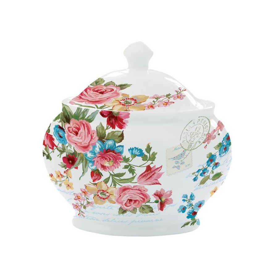 Wykonana we Włoszech, porcelanowa cukiernica prowansalska z grafiką wielobarwnych kwiatów. Kolory jak z bajki!