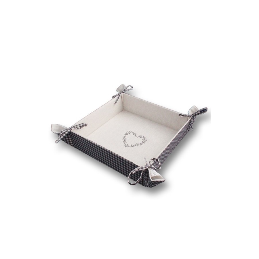 Dekoracyjny koszyk na pieczywo z kraciastym materiałem na zewnątrz i kremowym wewnątrz! Rogi koszyka zostały przewiązane wstążkową kokardką, co tworzy niebanalny kształt. Twoje pieczywo będzie się prezentowało elegancko i gustownie!