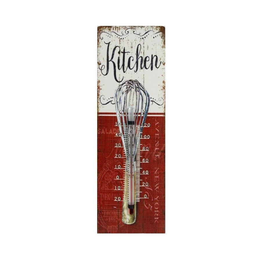 Poruszający zmysły termometr retro w biało-czerwonej kolorystyce i dużym napisem Kitchen! Musisz go nieć!