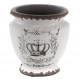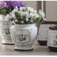 Osłonki na doniczki w kształcie pękatego kielicha zostały udekorowane motywem pięknie nakreślonej korony oraz napisem.