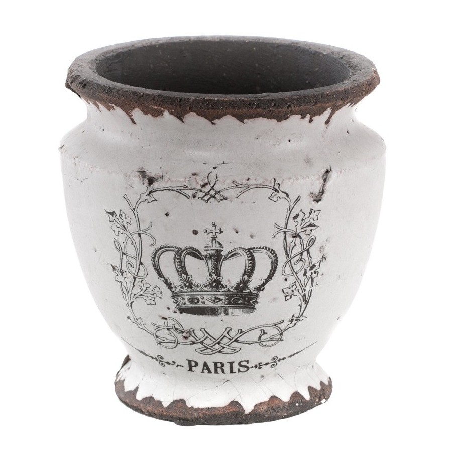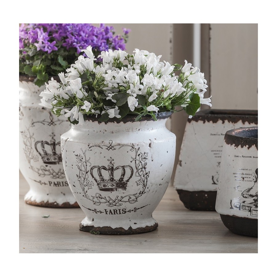 W osłonki w stylu francuskim wtoczono zew cudownej Prowansji, dlatego na ich powierzchni zauważamy ujmujące odpryski farby oraz lekkie draśnięcia. Efekty te, dodają osłonkom uroku i wiekowości. Przedmioty pomalowano pędzelkiem zanurzonym w białej barwie, robiąc miejsce na cudowne zdobienie w postaci wizerunku bogatej korony. Polecamy!