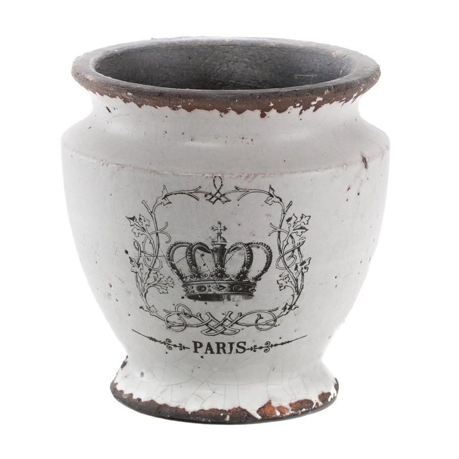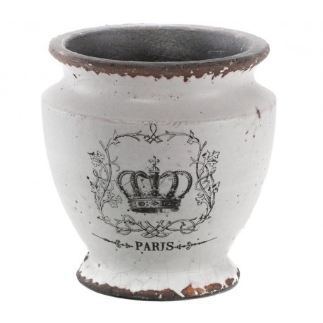 Gustowne osłonki w stylu francuskim z napisem PARIS i motywem królewskiej korony otoczonej dekoracyjnymi wzorami. Osłonki ceramiczne zostały wykonane z kamionki i pokryte białą powloką. Celowe popękania wprowadzają niezapomniany klimat minionych lat. Osłonki na doniczki to doskonała alternatywa dla zwykłych doniczek!