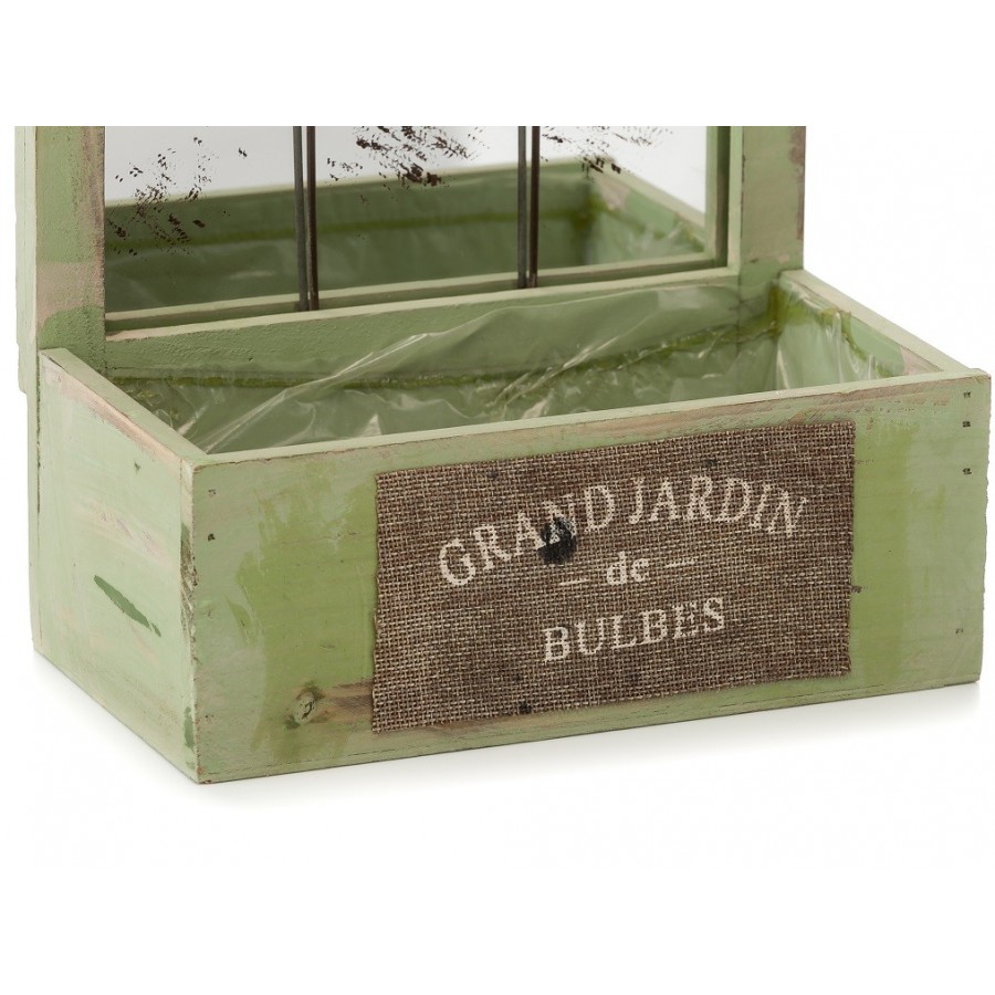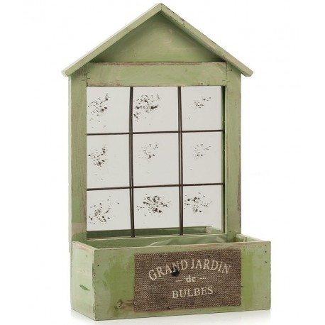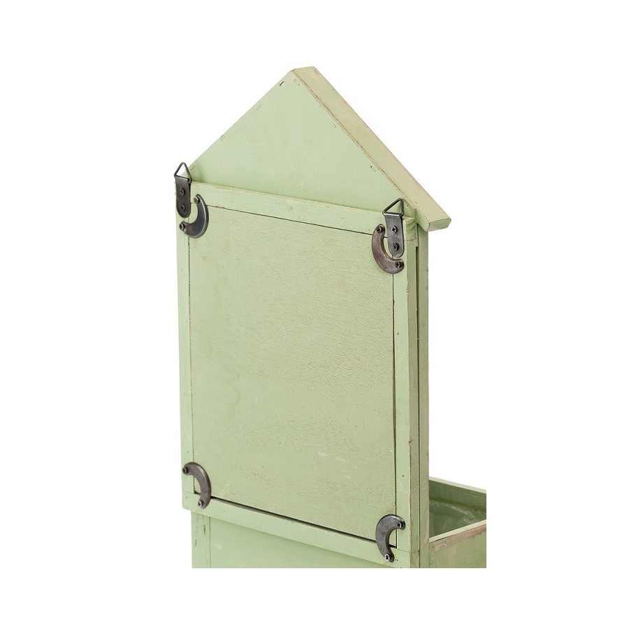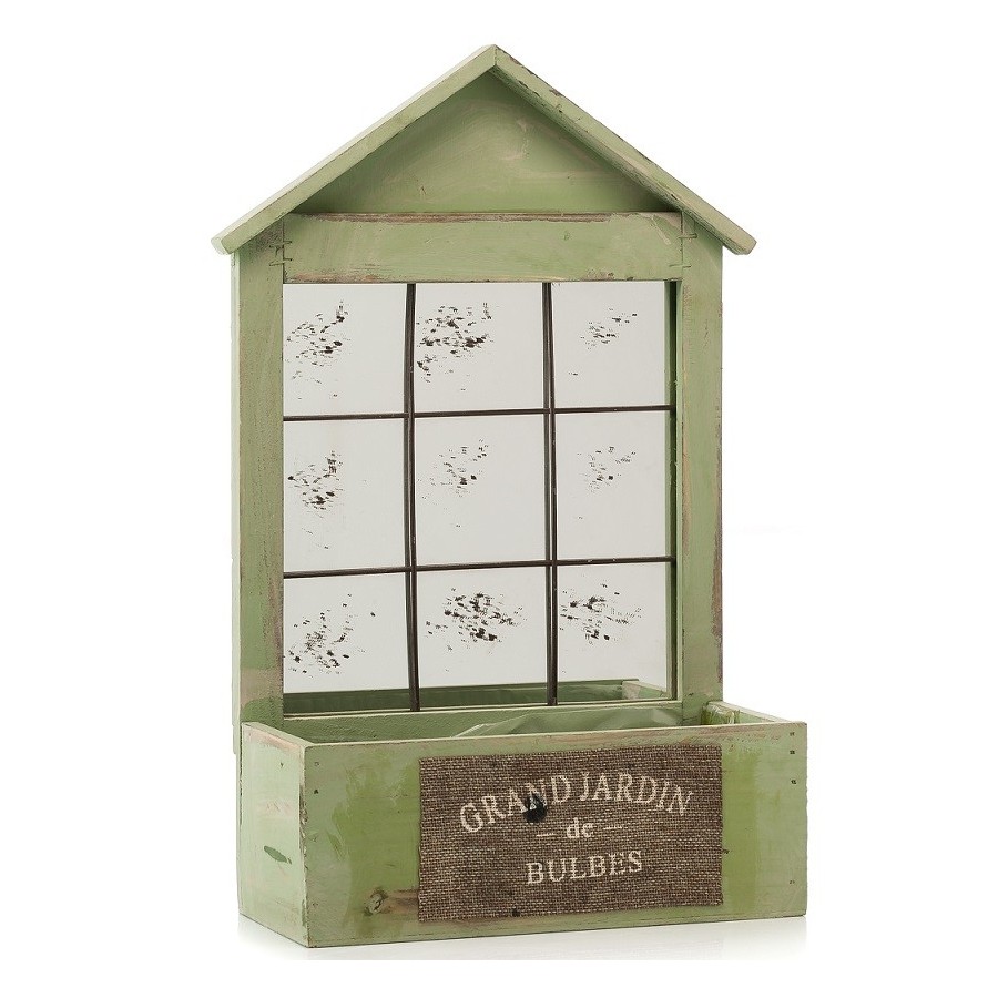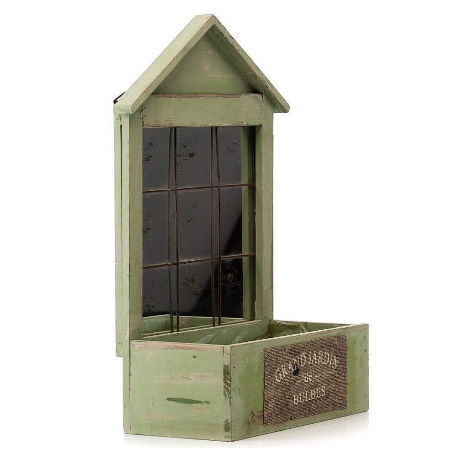 Zielony kwietnik ścienny, to drewniana konstrukcja wisząca z obudowanym miejscem na doniczkę. Czarujacy dodatek!