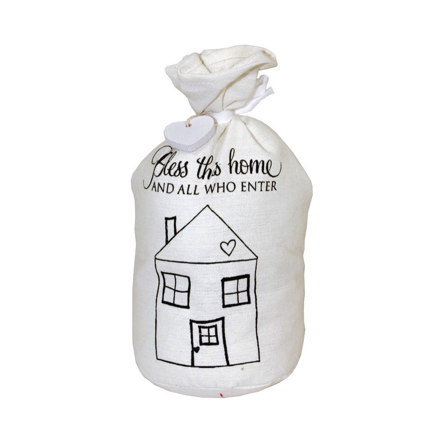 Świetne dodatki prowansalskie w postaci stoperów do drzwi z prosty sposób załatwią problem ciągle zamykających się drzwi czy to za sprawą przeciągu czy innych okoliczności sprzyjających. Niezwykle przydatny w każdym wnętrzu stanowi także ciekawy dodatek dekoracyjny - biały materiał kontrastujący z czarną grafiką robi wrażenie!