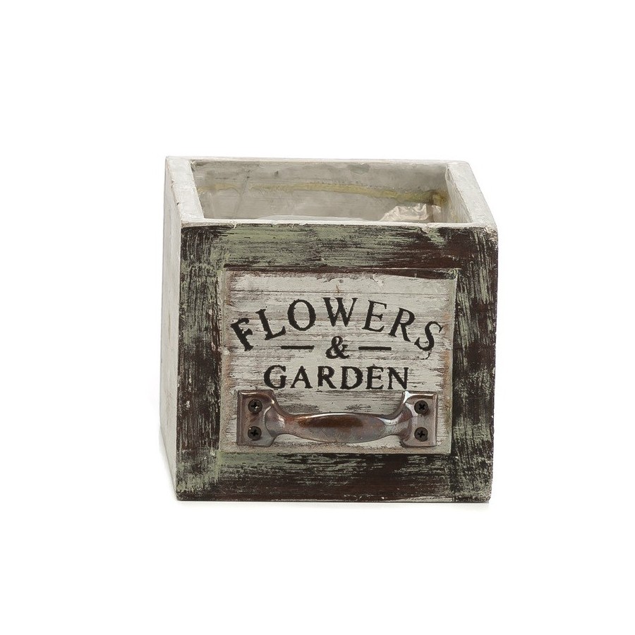 Zachwycające kształtem, dekoracjami i funkcjonalnością osłonki na zioła z napisem Flowers & Garden.