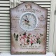 Zegary ścienne na drewnianej tablicy z motywami róż, stempli pocztowych i francuskich napisów!