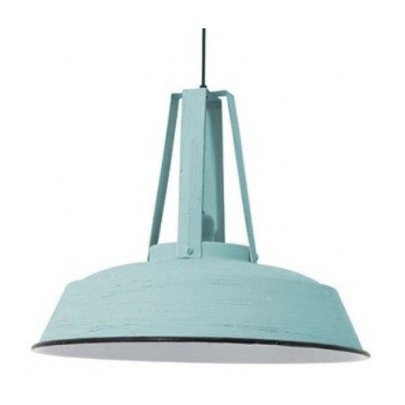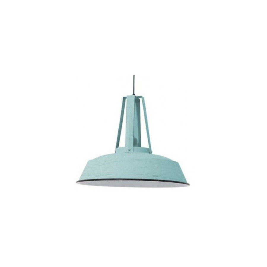 Lampa w stylu loftowym przyciąga uwagę nie tylko matowym, błękitnym kolorem, ale także kanciastymi zakończeniami, widocznymi łączeniami i śrubami, a także przede wszystkim, mocnym szeroko rozprzestrzeniającym się światłem.