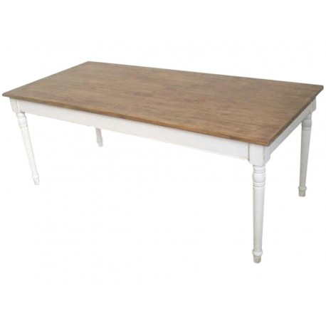 Duży, prostokątny stół prowansalski to drewniana konstrukcja, idealna do Twojej jadalni czy salonu. Majestatyczny blat w kolorze naturalnego drewna został wspaniale wyeksponowany poprzez białą podstawę z widocznymi przetarciami i zadrapaniami farby, które czynią stół prowansalski jeszcze bardziej klimatycznym.