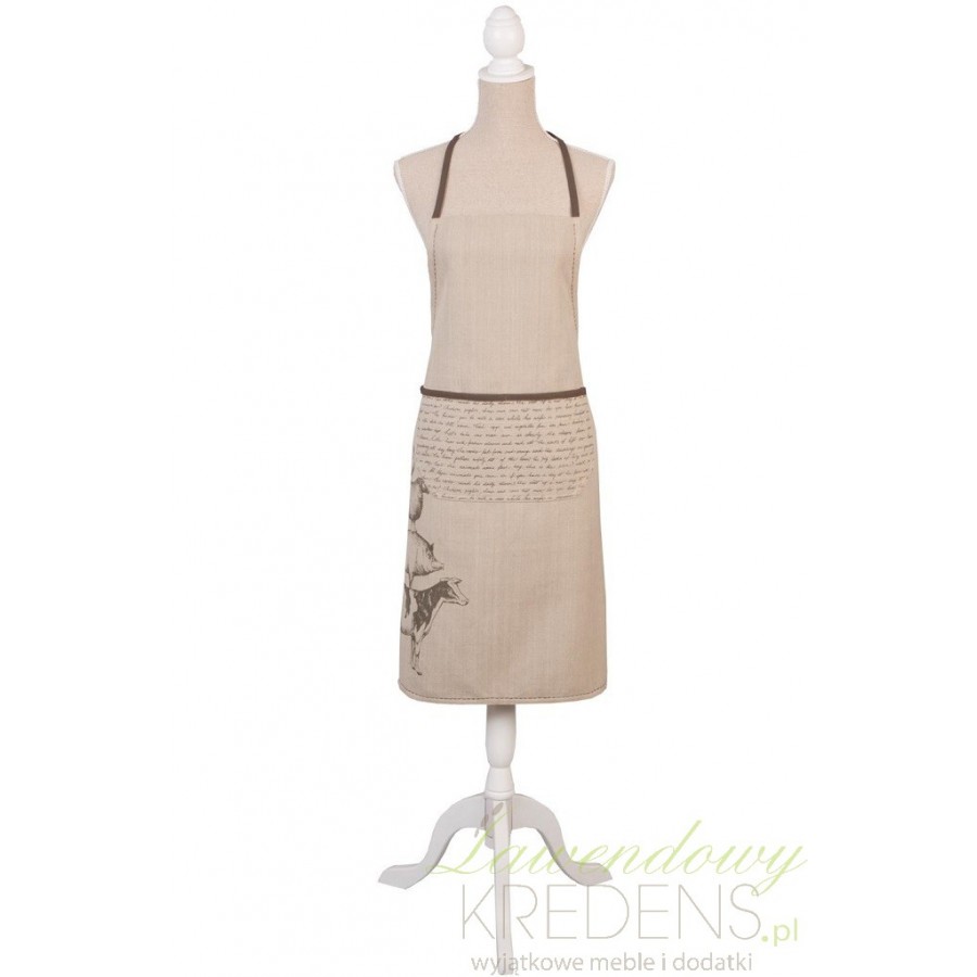 Nietypowo ozdobiony wizerunkami domowych zwierząt hodowlanych fartuszek kuchenny w odcieniach beżu i brązu!