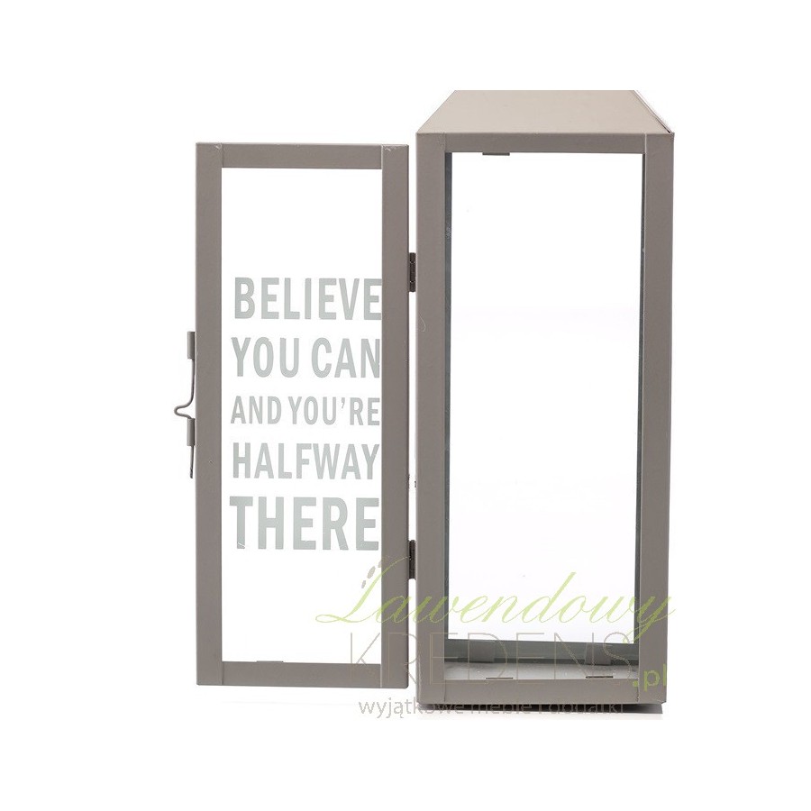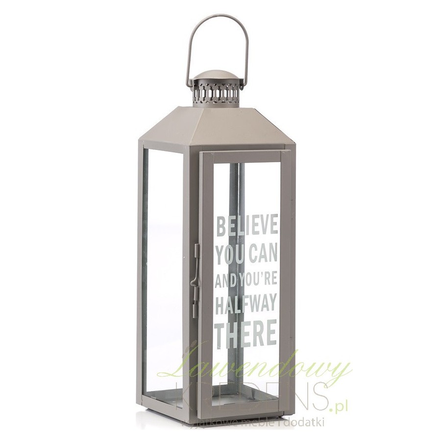 Niezwykle prosty w formie, zachwycający elegancją lampion metalowy w szarej obudowie z otwieraną szybką!