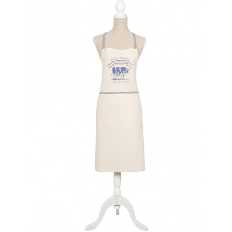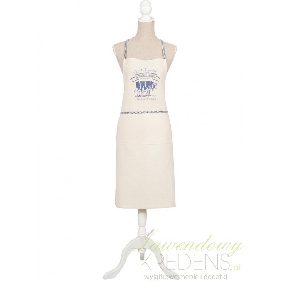 Bawełniany fartuch w stylu prowansalskim w delikatnym odcieniu z niebieskimi wstawkami. Praktyczny i elegancki!
