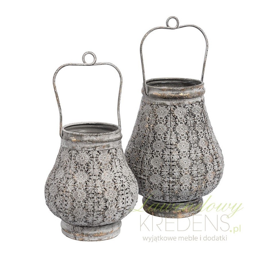 Doskonałe zarówno do wnęrz zamkniętych jak i na taras czy do ogrodu lampiony metalowe z ciekawym wschodnim wykończeniem, uwieńczony wygodnym uchwytem ułatwiającym przenoszenie! Świetne połączenie delikatności ażurowych powierzchni z metalowym kloszem. Szklany wkład zabezpiecza świece przez wiatrem!