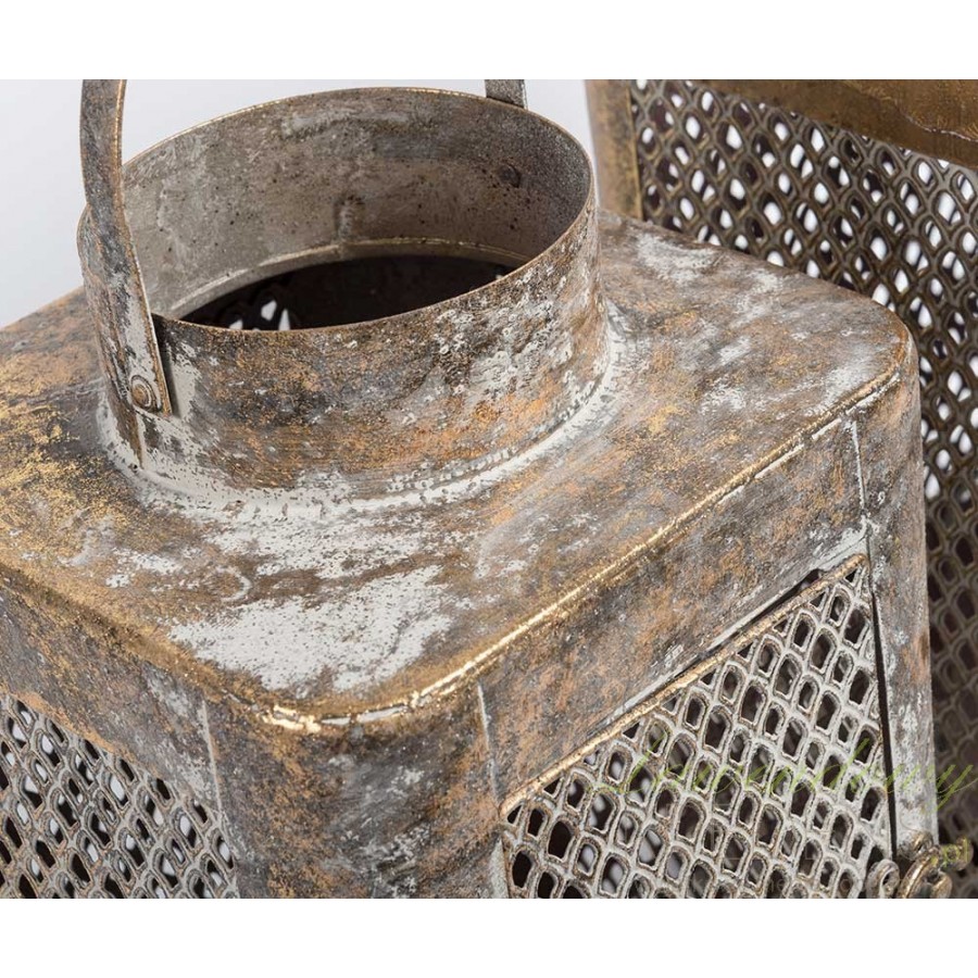Lampiony metalowe stanowią piękną ozdobę domu. Lampion ażurowy firmy Belldeco wykonany jest z postarzanego metalu i szklanego wkładu. Stylizowany jest na bardzo stary i zniszczony, co dodaje mu unikalnej wartości. Wspaniale prezentuje się na ganku lub werandzie.