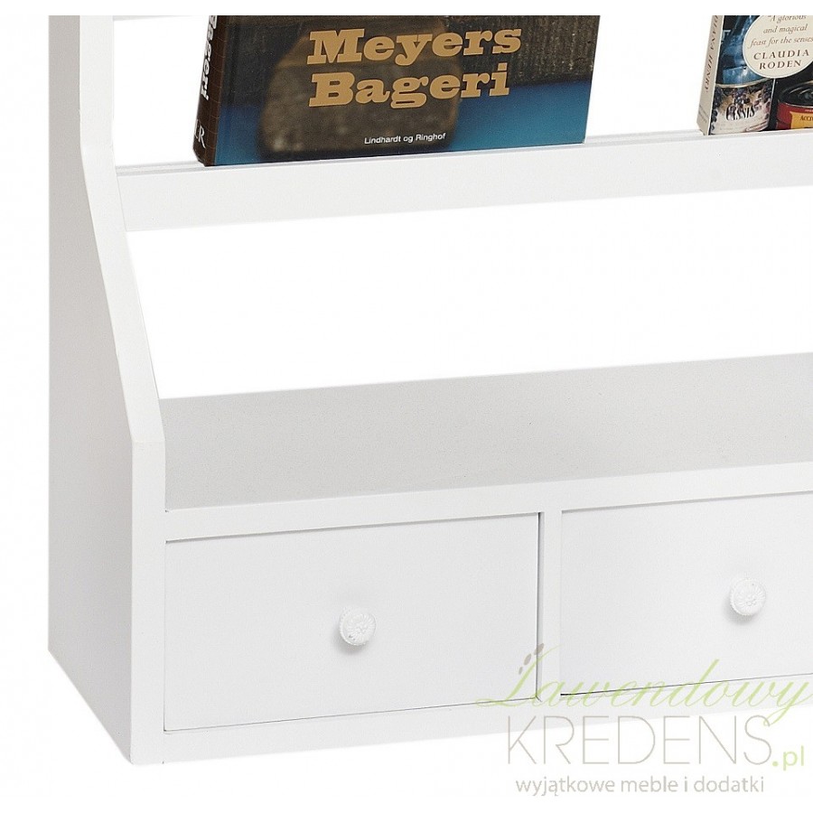 Gustowna biała półka, gotowa służyć za miejsce na dekoracyjne czy użytkowe talerze czy także na książki i czasopisma!